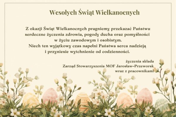 Stowarzyszenie Miejskiego Obszaru Funkcjonalnego Jarosław – Przeworsk realizuje projekt Lepsza przyszłość – nowe horyzonty, współfinansowanym ze środków Europejskiego Funduszu Społecznego Plus w ramach Programu Regionalnego Fundusze Europejskie dla Podkarpacia 2021-2027, realizowany przez Stowarzyszenie Miejskiego Obszaru Funkcjonalnego Jarosław-Przeworsk w partnerstwie. Działanie 7.8 Wsparcie procesów adaptacyjnych i modernizacyjnych pracowników oraz przedsiębiorców – projekty konkursowe, nabór nr FEPK.07.08-IP.01-001/23, Numer projektu: FEPK.07.08-IP.01-0060/23.